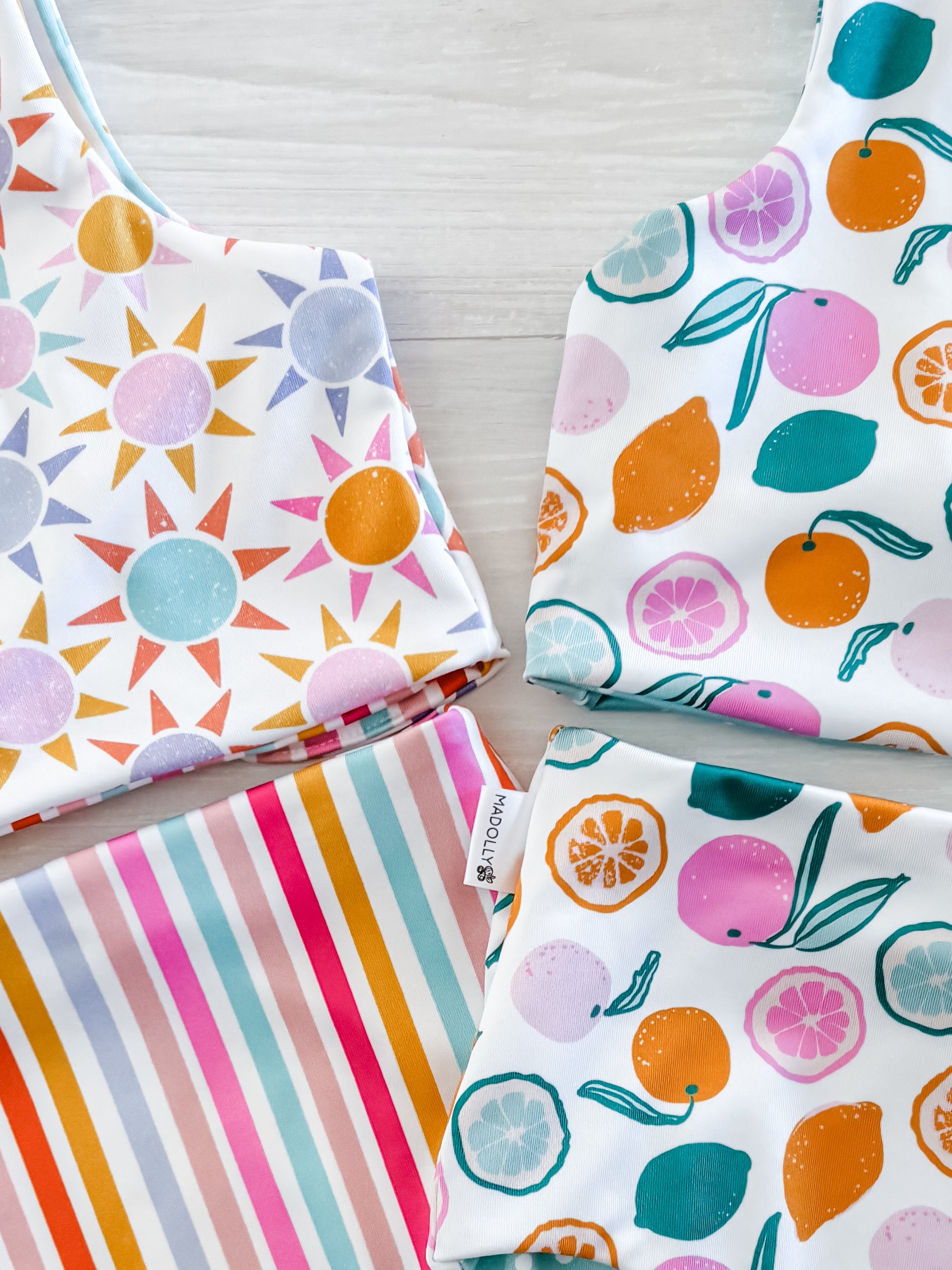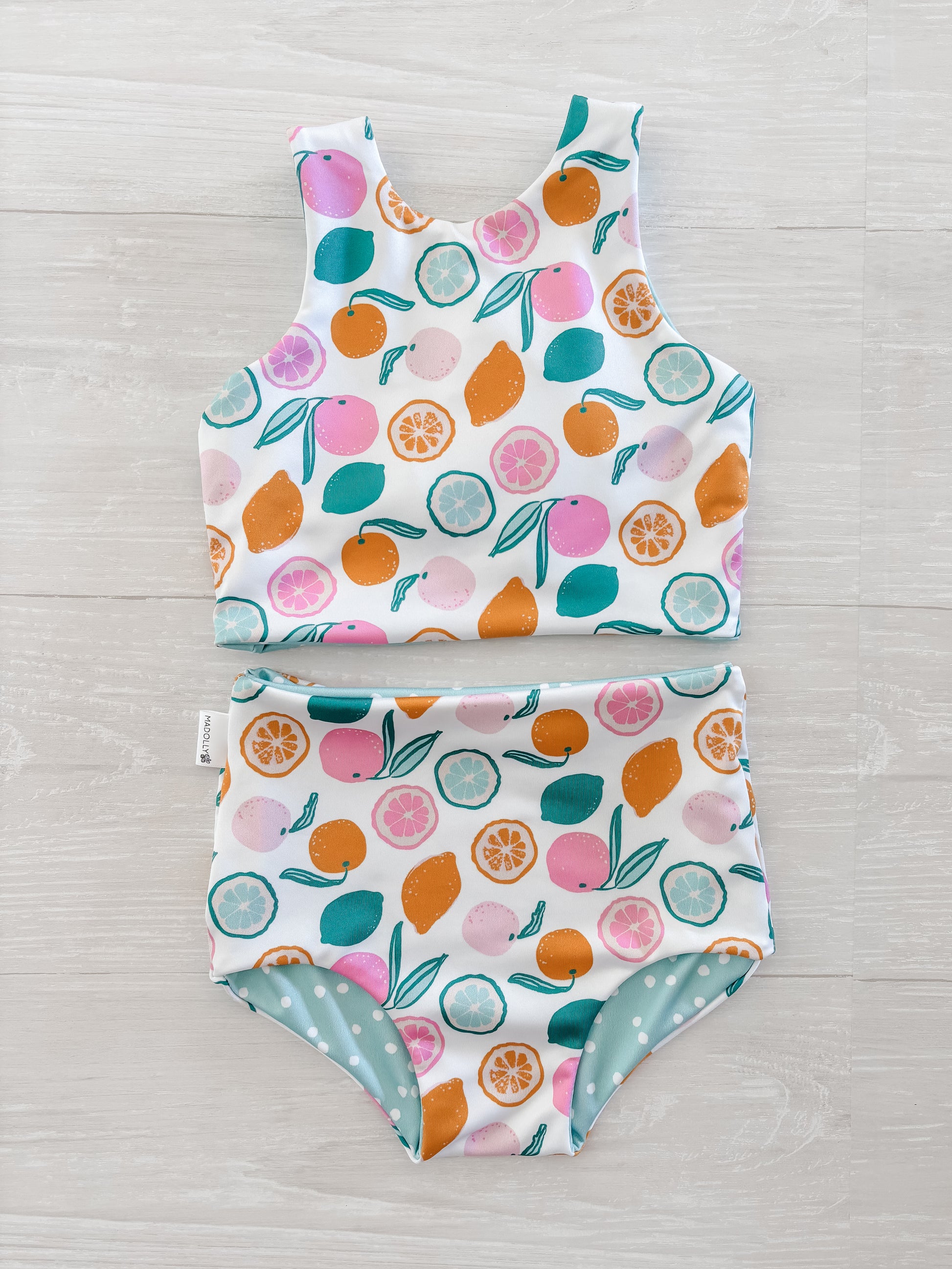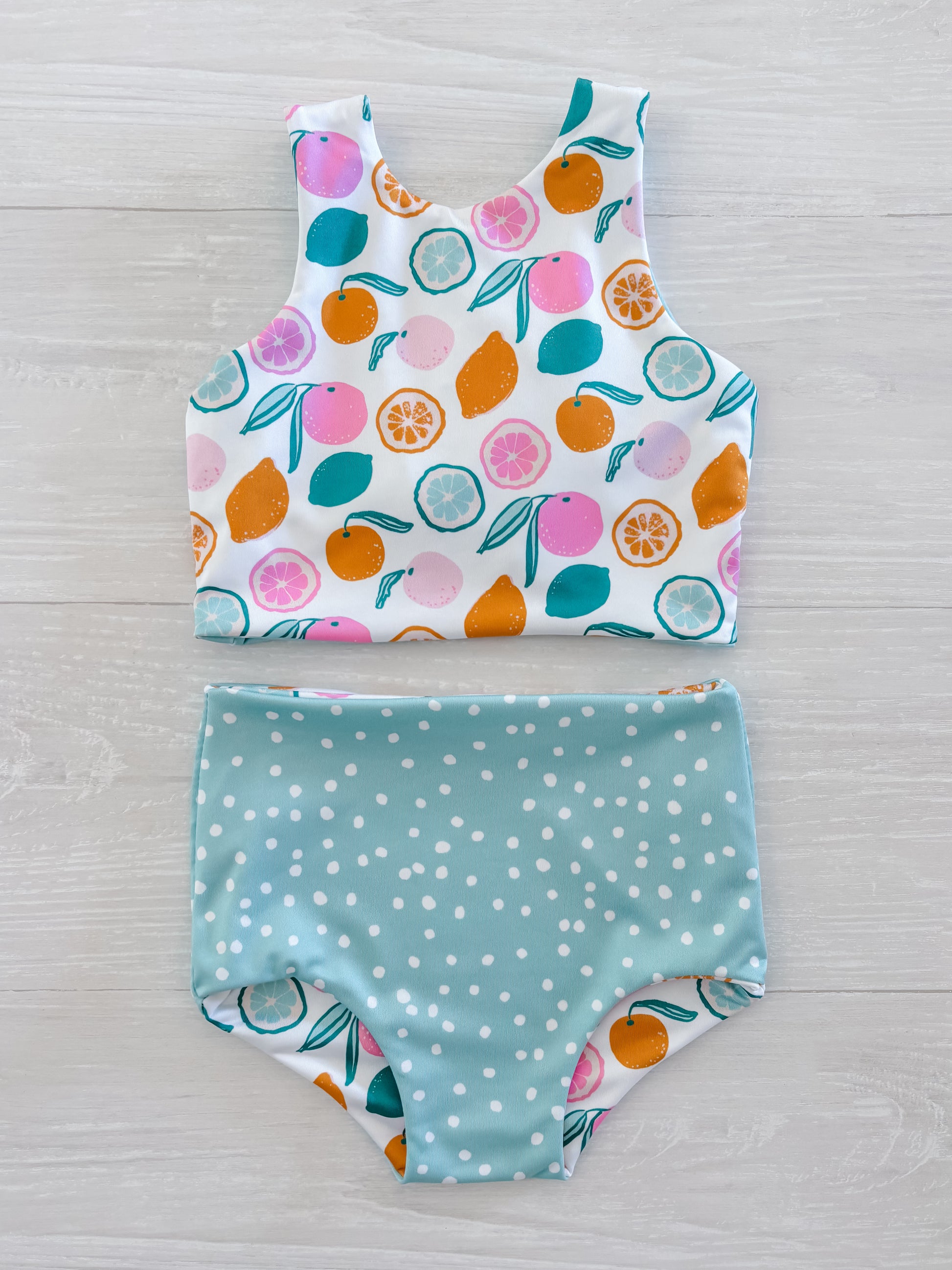 Citrus and Polka Dot Reversible Swimwear; Reversible Bikini ; High waisted bathing suit